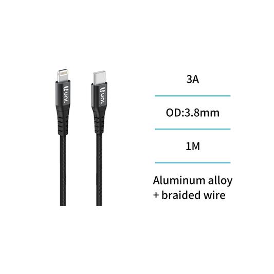 UNI-Nylon-punottu C–L 3A pikalatauskaapeli 1 metri (UNI,CB9169, musta)