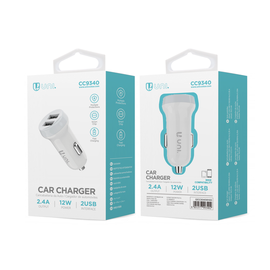 Car Charger 2USB 2.4A White Gray ROHS CE TUV