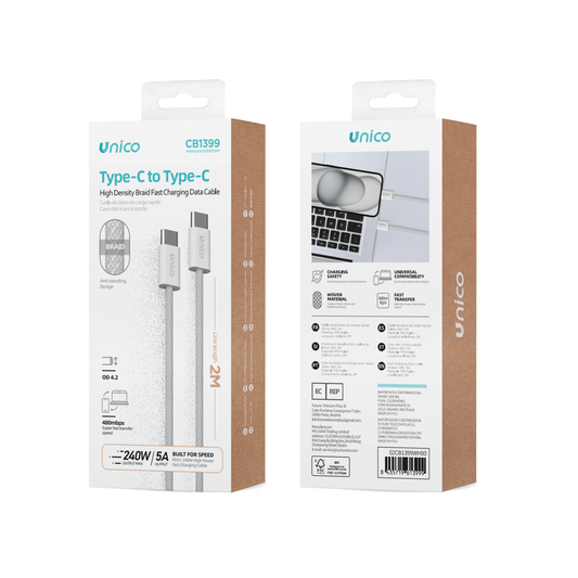 UNI-Suuritiheyksinen punottu C–C PD60W CE 2 metri (UNI, CB1269, luonnonvalkoinen)