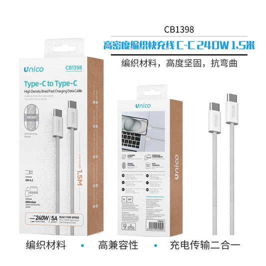 UNI-C - C 60W 3A pikalatauskaapeli CE 1m (UNI,CB1206,valkoinen)