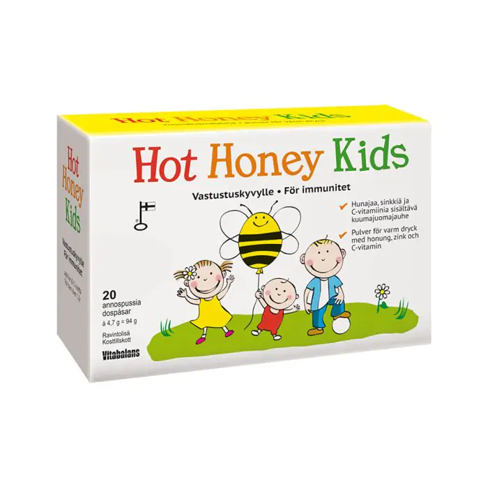 Hot Honey Kids on erityisesti pienille lapsille kehitetty kuumajauhejauhe, joka sisältää kuivattua hunajaa, C-vitamiinia ja sinkkiä. Juomassa on pienille lapsille sopivat määrät C-vitamiinia ja sinkkiä, jotka edistävät immuunijärjestelmän normaalia toimintaa.