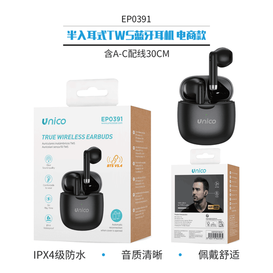 Semi-in-ear TWS Bluetooth headset e-commerce model(02UNICO,EP0391,black)