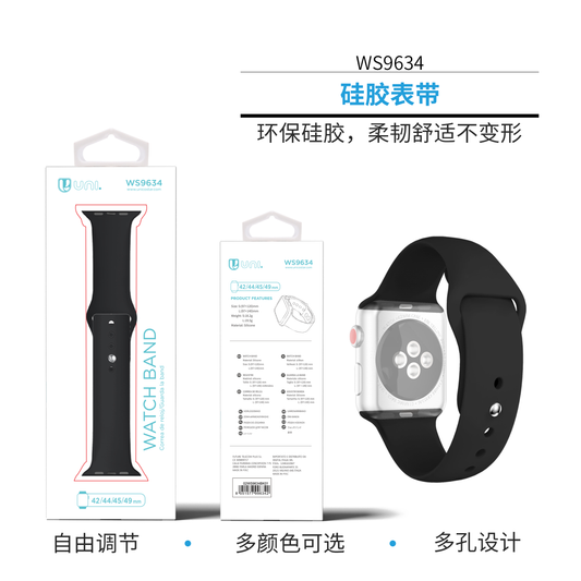 Silicone watch strap-42/44mm , Size L , width22mm (for men) Black ES