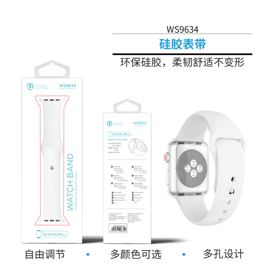 Silicone watch strap-42/44mm , Size L , width22mm (for men) White ES